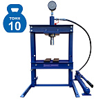 Настольный. Занимает мало места. Основные функции выполняет. Для гаража. Гидравлический, ручной, сборно-разборный. Гидроцилиндр с пуансоном имеет возможность перемещения по всей ширине рамы. Для запрессовки деталей механизмов. Усилие 10 тонн. Интервал пуансона 135 мм. Рабочее окно: 400 x 350 мм.