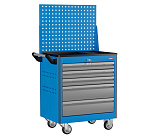 В корпусе тележки, расположено 5 ящиков разного объема. Ящики установлены на шариковых направляющих полного выдвижения. Тележка снабжена системой запирания, совмещенной с боковым замком, который закрывает одновременно все ящики. Верх тележек покрыт резиновым маслостойким ковриком. На боковой стенке тележки установлена удобная эргономичная ручка. Максимально допустимая масса размещаемого груза в тележке 145 кг.