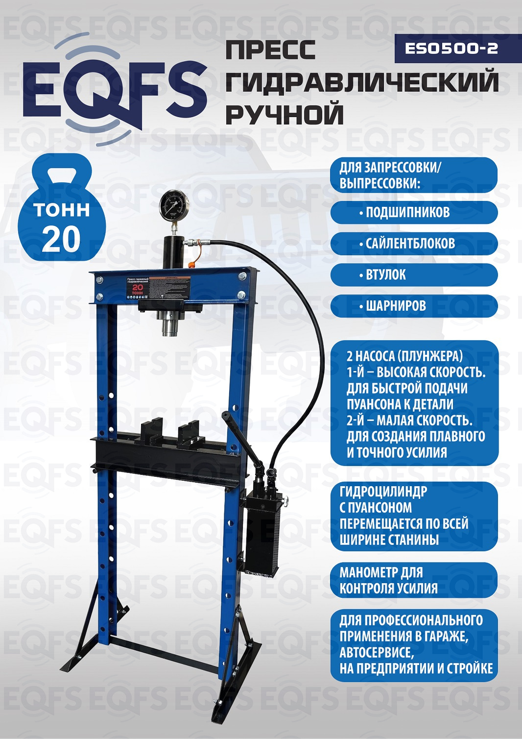 ES0500-2 Пресс гидравлический ручной, 20 тонн