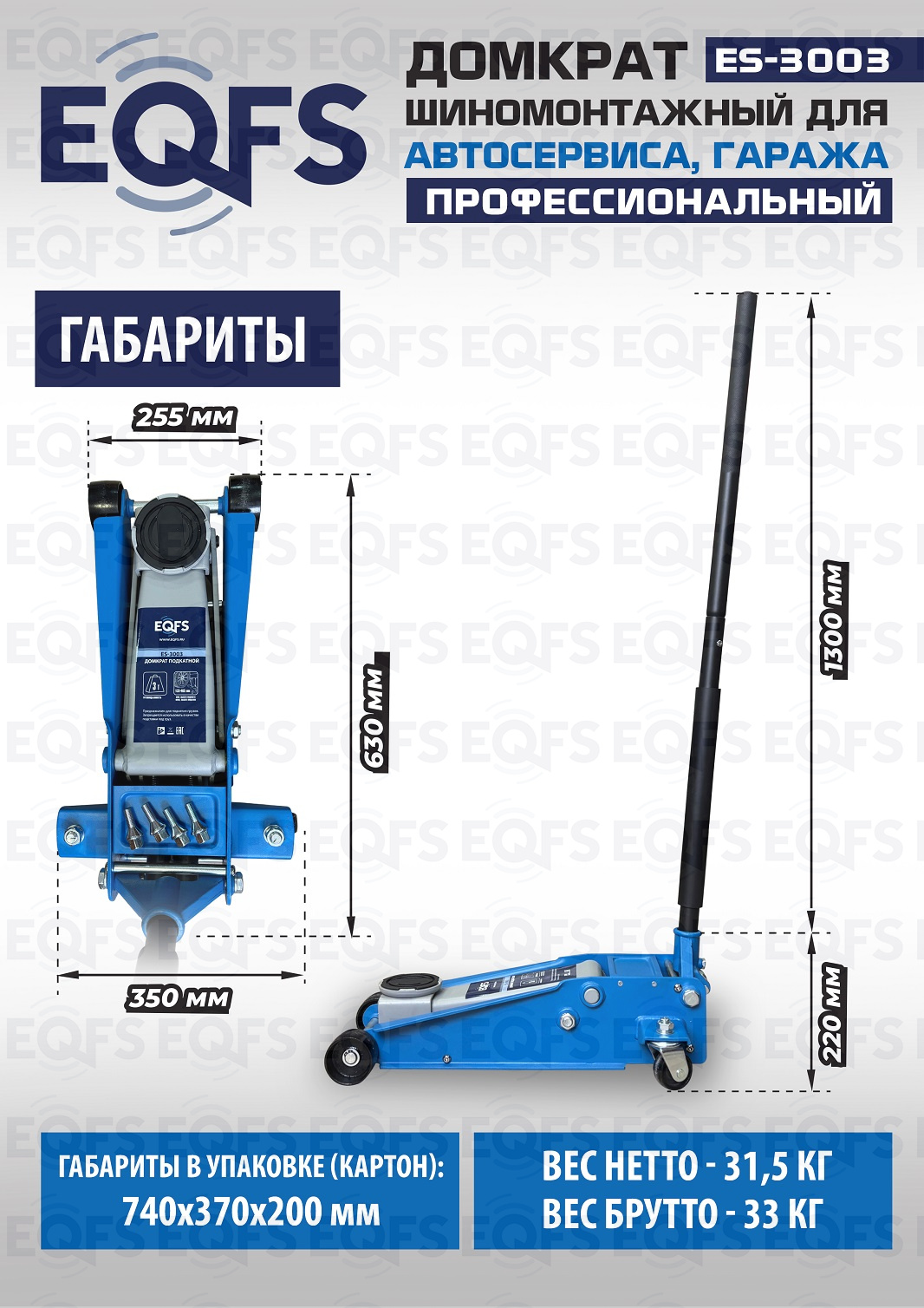 Технические особенности ES-3003 домкрат подкатной 3 тонн: