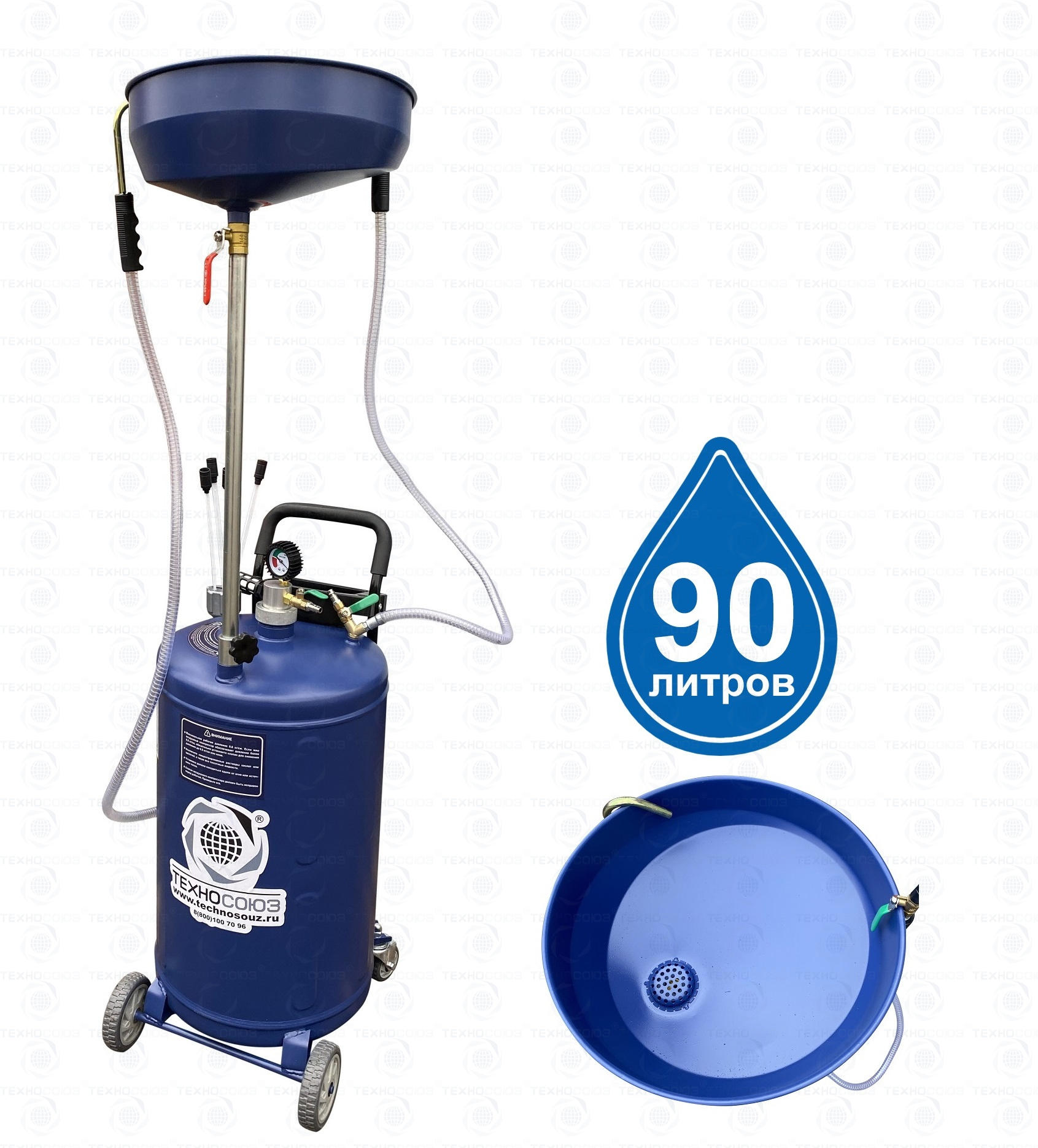 Установка для слива и откачки масла вмещает 90 литров отработанного масла и антифриза. Бак 80л + чаша (воронка) 10л.
